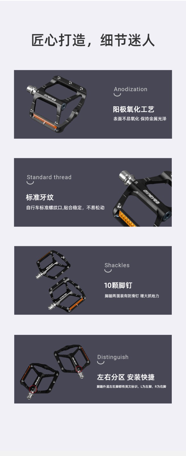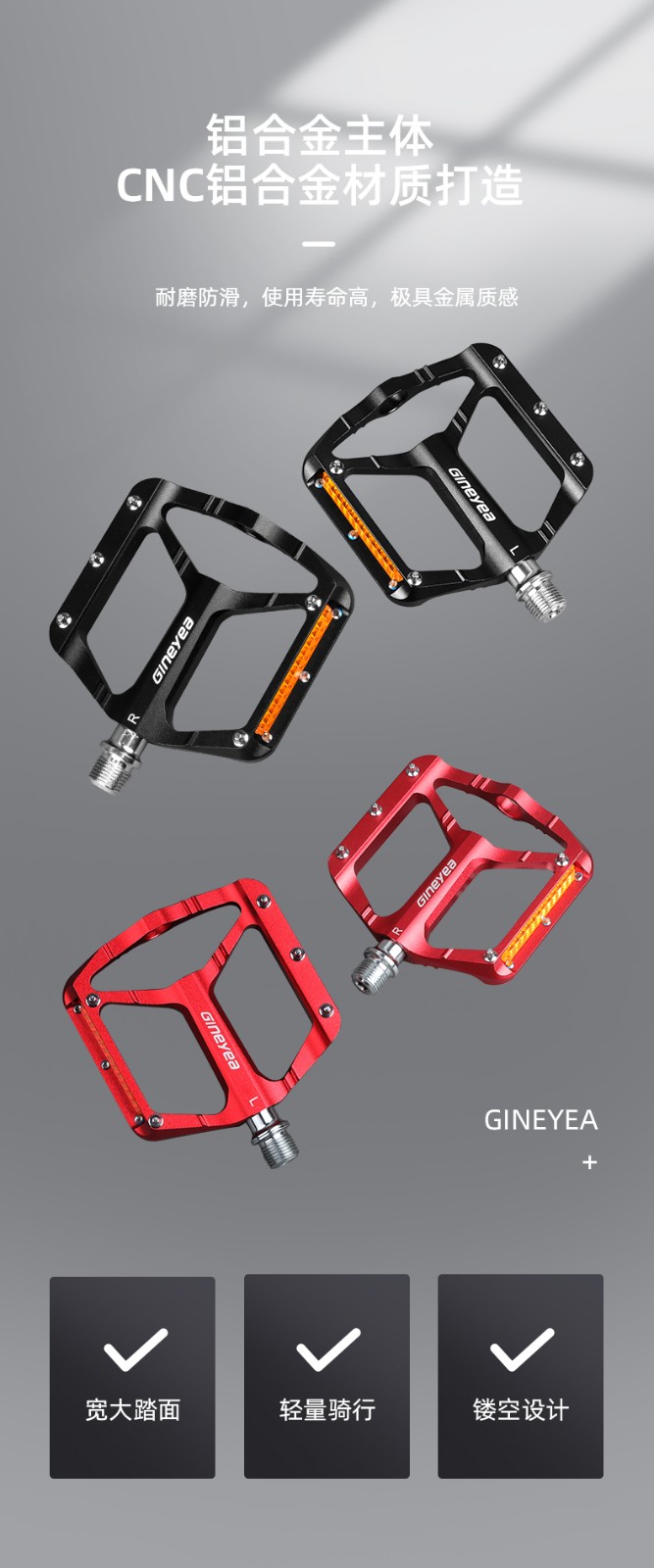 Gineyea碳纖維腳踏自行車公路車山地車防滑釘踩面鈦合金軸腳踏