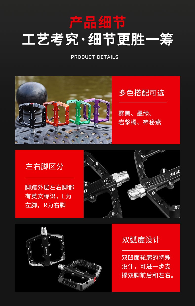 Gineyea碳纖維腳踏自行車公路車山地車防滑釘踩面鈦合金軸腳踏