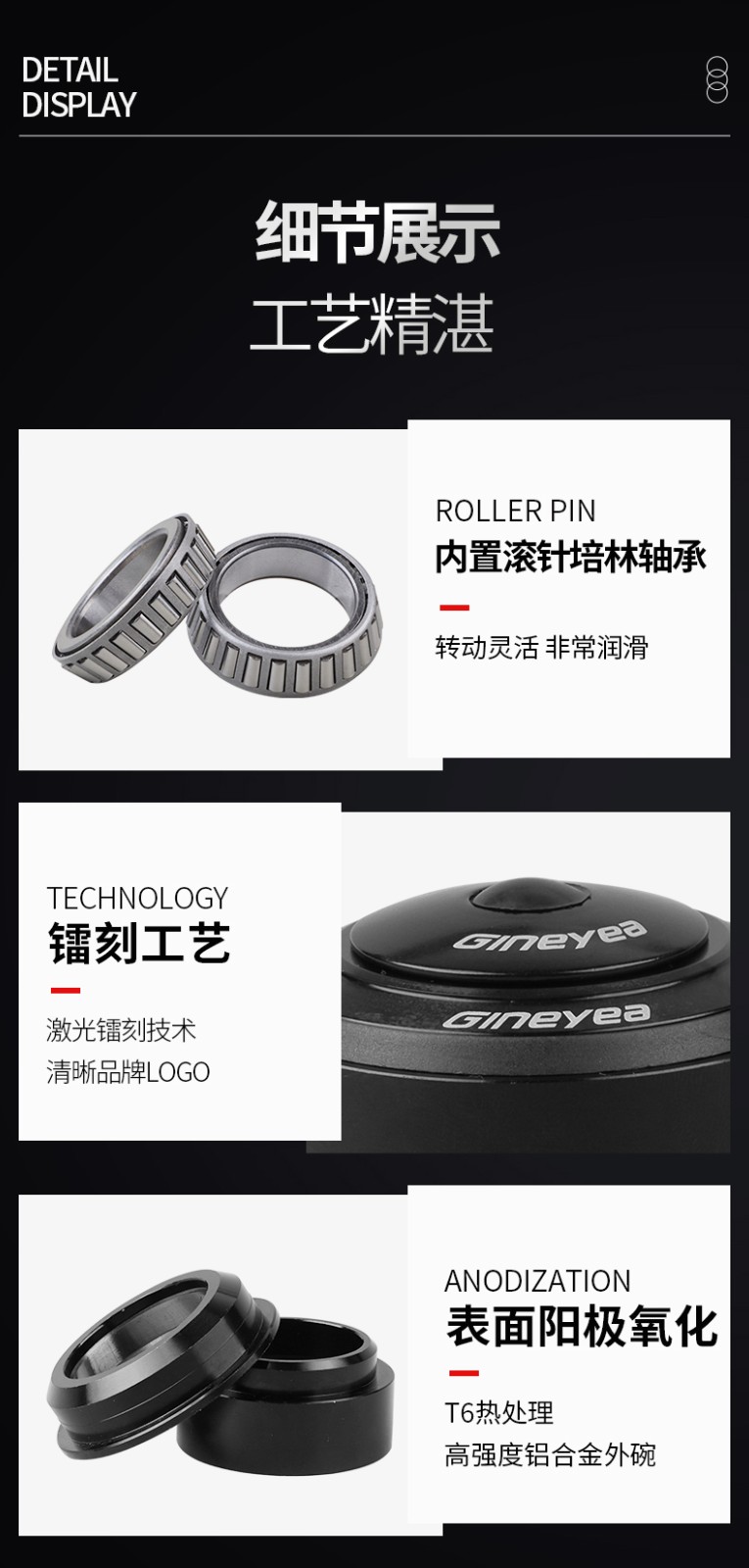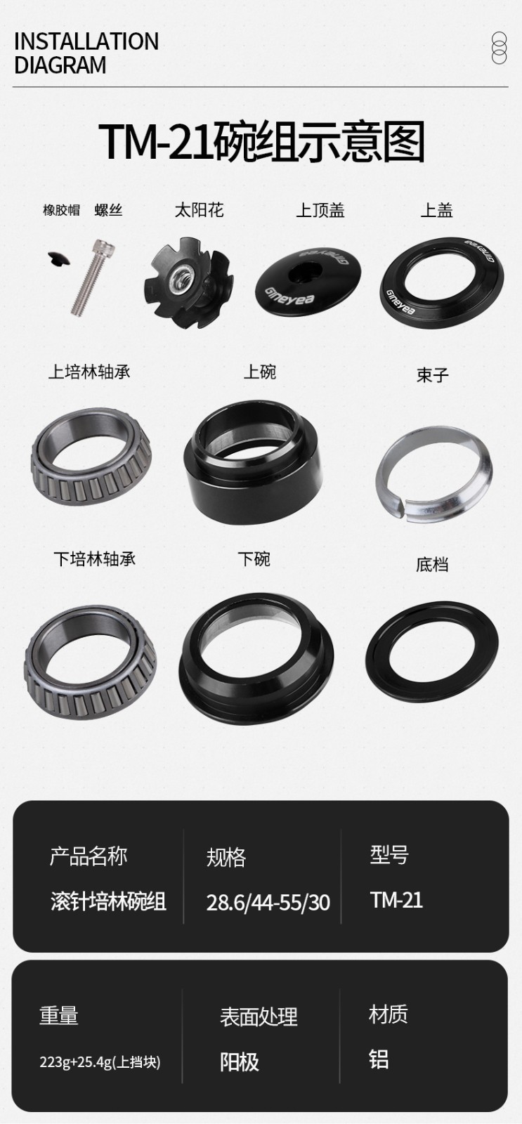 GINEYEA電摩車頭碗組越野摩托車錐管44-55mm滾針培林前叉軸承底座