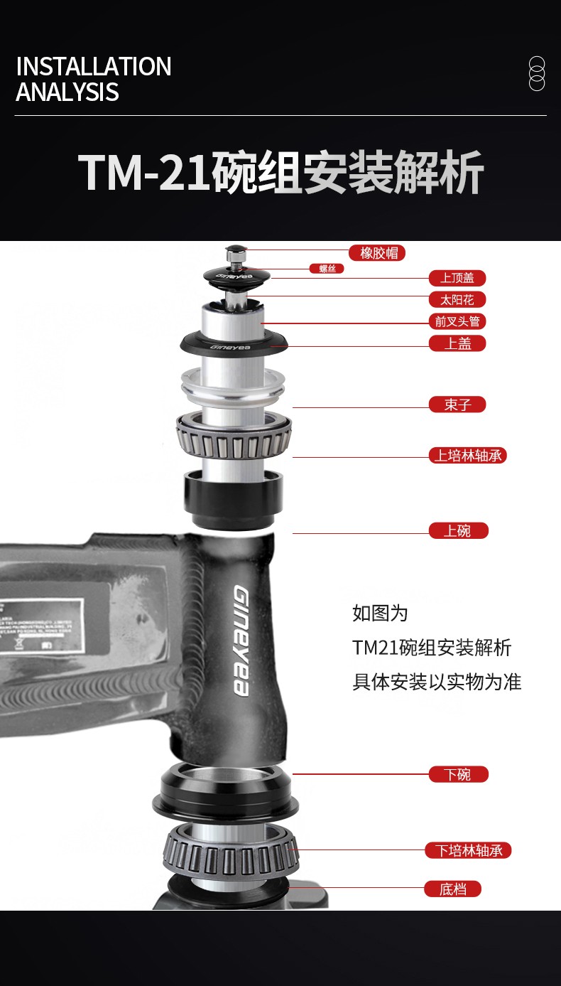 景曄自行車前叉腕組陶瓷軸承直管34/44/41/41.8mm椎管44-50.6/56