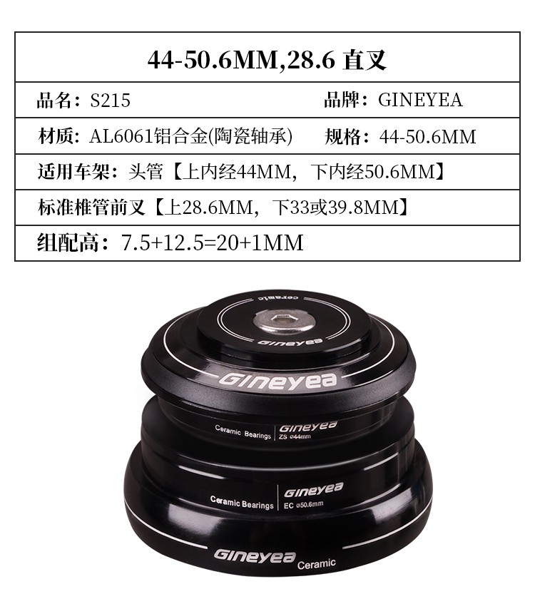 景曄自行車前叉腕組陶瓷軸承直管34/44/41/41.8mm椎管44-50.6/56