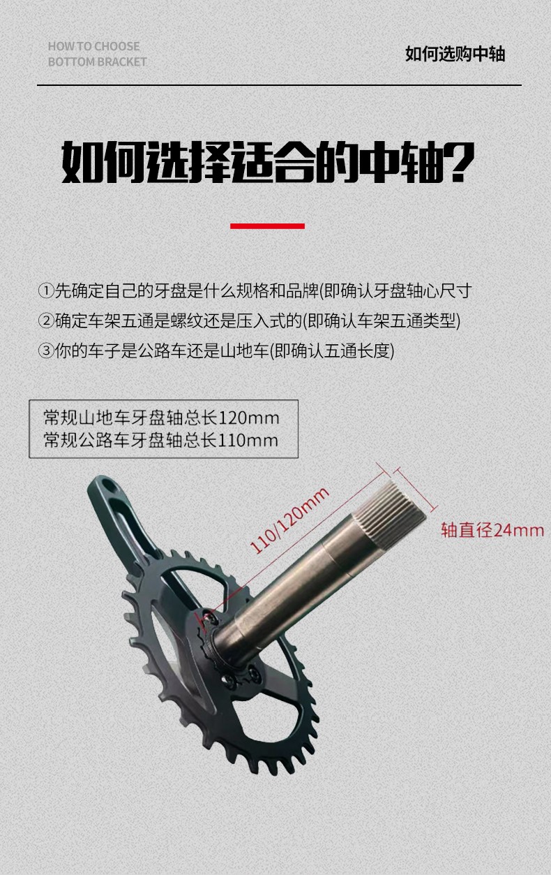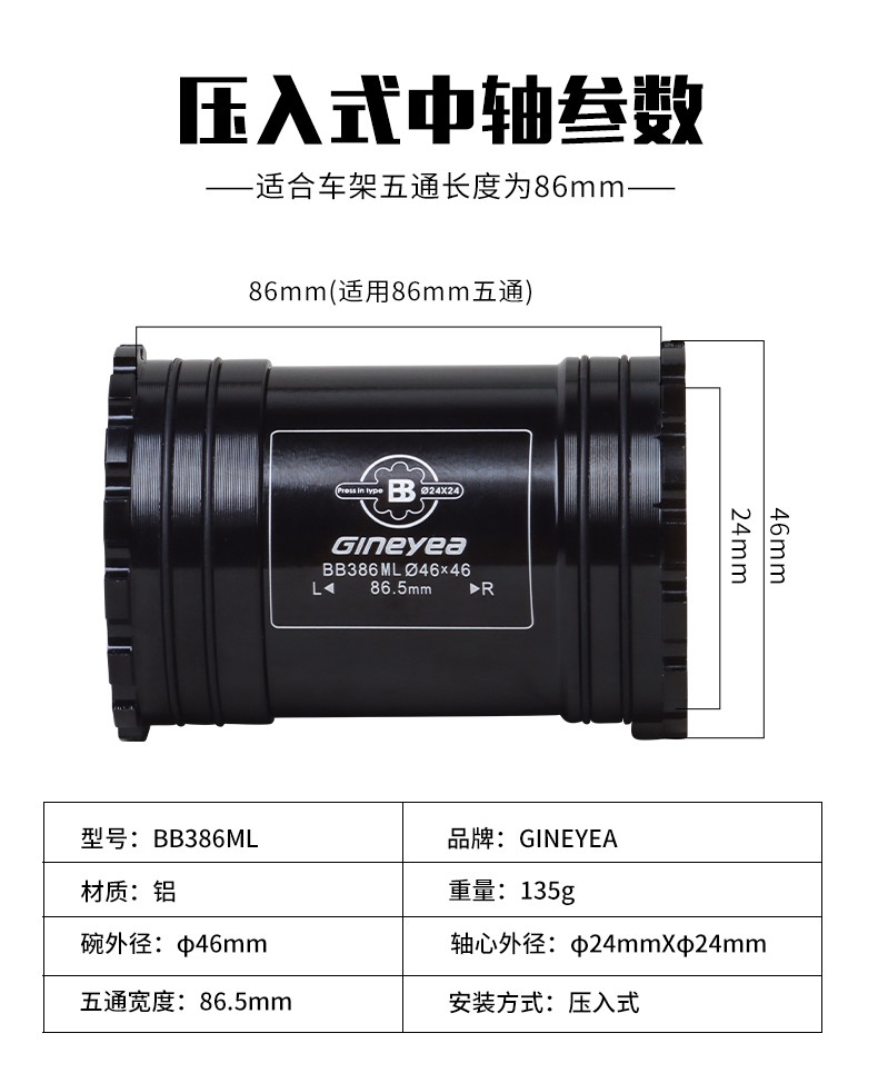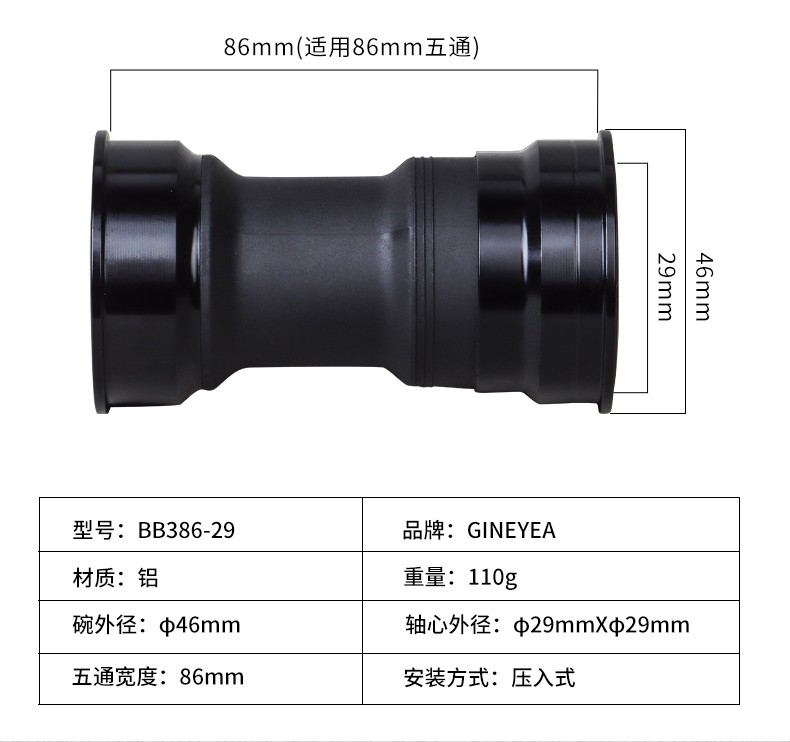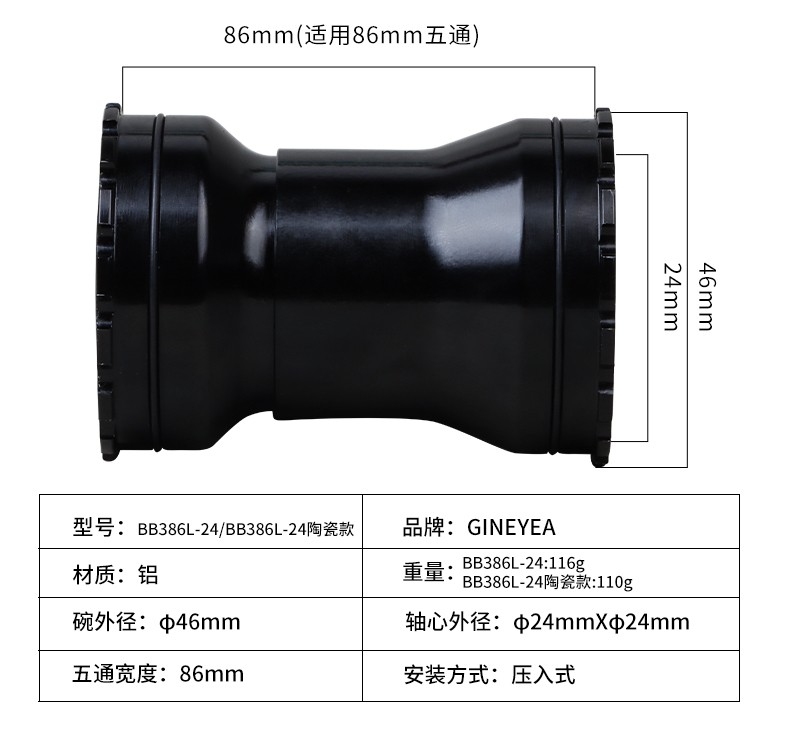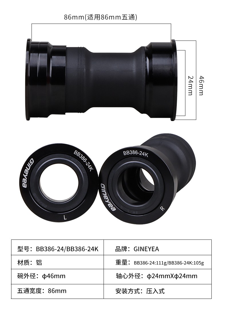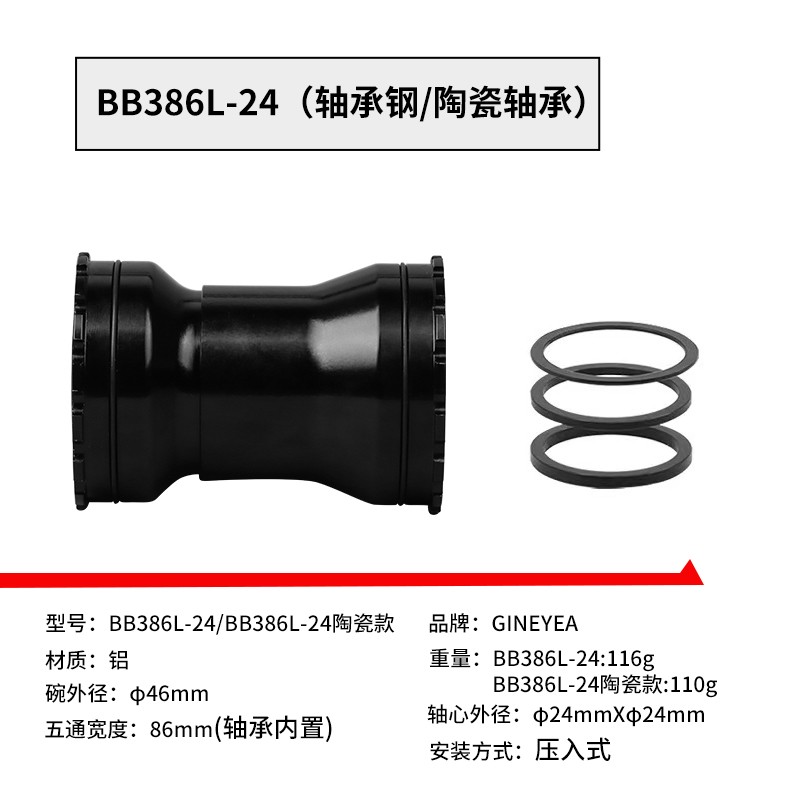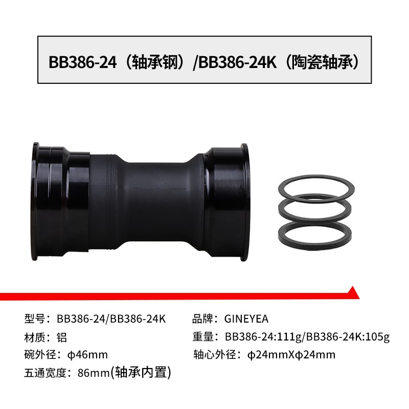 景曄386中軸山地公路自行車對鎖式中軸24/29中空一體牙盤壓入式