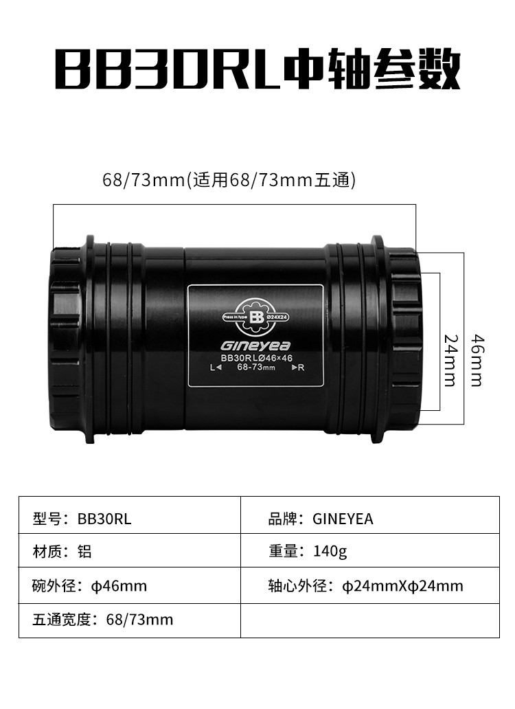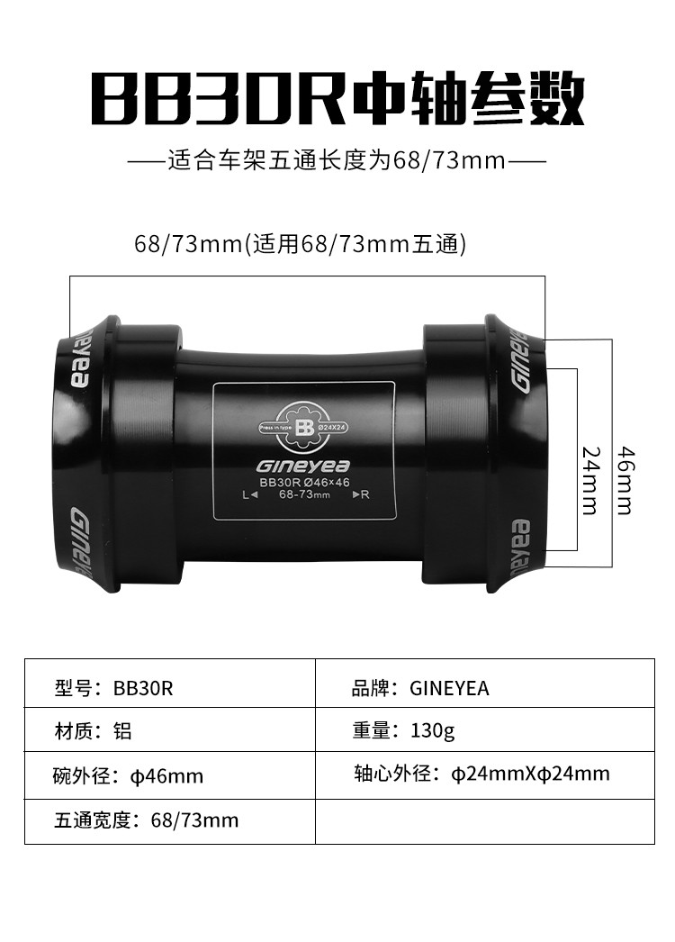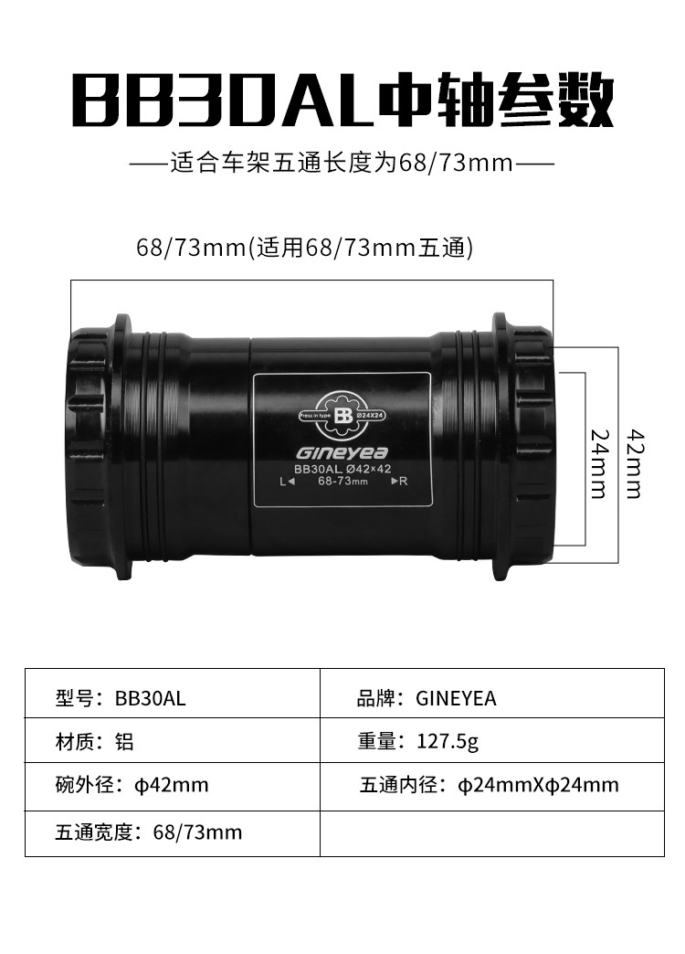 景曄386中軸山地公路自行車對(duì)鎖式中軸24/29中空一體牙盤壓入式