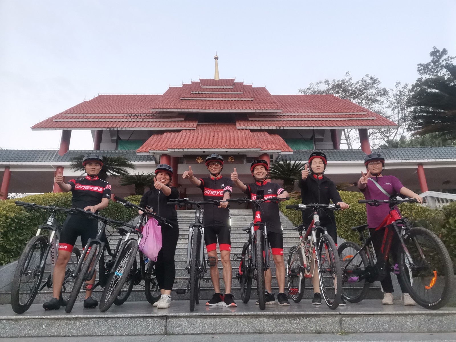 早上5點半開始集合,景曄車隊一路從廠區(qū)內(nèi)開始騎行前往大屏障森林公園。沿途微光驟亮,身穿黑紅相間騎行服的隊員們猶如黎明的光輝穿越薄霧一路前行,在景色優(yōu)美的公園綠道體驗超越自我的騎行樂趣。