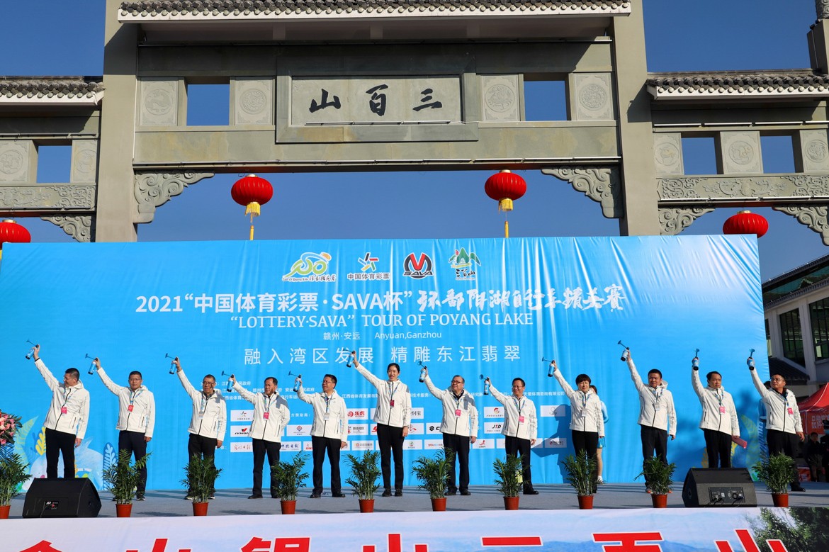 江西省體育局黨組成員、副局長金紫薇,贛州市政協(xié)副主席藍赟,贛州師范高等專科學(xué)校黨委書記廖偉,安遠縣委書記楊有谷,贛州市政府副秘書長溫海,贛州市體育局局長李詒蕓,江西省體育局宣教法規(guī)處處長鐘進華,江西省體育局人事處處長陳晶,江西省體育發(fā)展有限公司董事長沈紅斌,安遠縣政府副縣長何志勇,深圳市景曄交通器材有限公司總經(jīng)理張勇等出席比賽開幕式并為比賽發(fā)車鳴笛,安遠縣委常委、組織部長羅水養(yǎng)主持發(fā)車儀式。