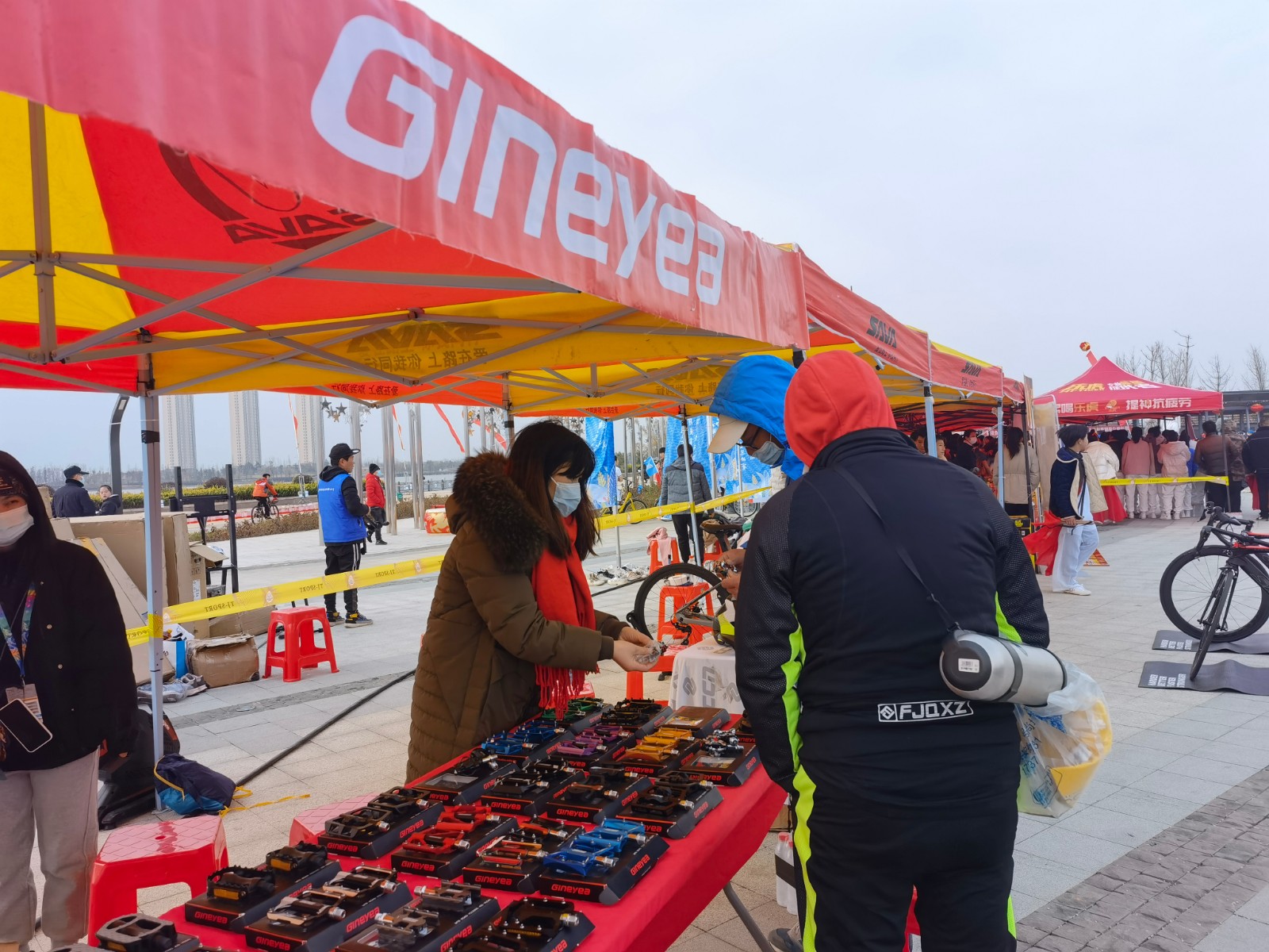 在余干站的比賽中,考慮到氣溫突降至零度以下,組委會在充分研判后,果斷作出調(diào)整,由最先的 49.1 公里賽程縮短為 20 公里,終點由原先的鄱陽湖康山大堤江豚灣改到了余干縣琵琶湖公園。同時,大賽組委會還提供了姜糖水、香蕉等補給,在起終點調(diào)集 9 輛大巴供運動員賽前賽后休整。