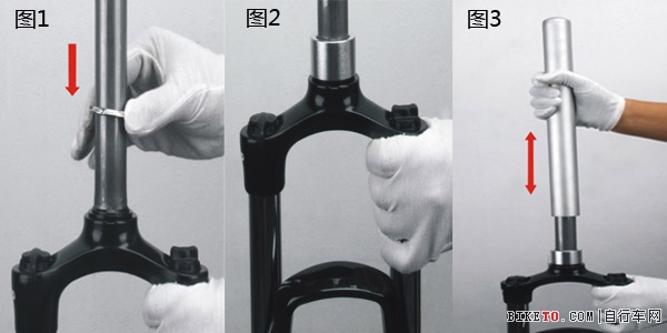 1.拿一相應的下檔,并調整好方向,斜面朝上,平面朝下放入前叉,如圖1。