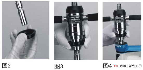 1.1 拿一裝下檔工具底座,套入裝有下檔的前叉上,如圖2。