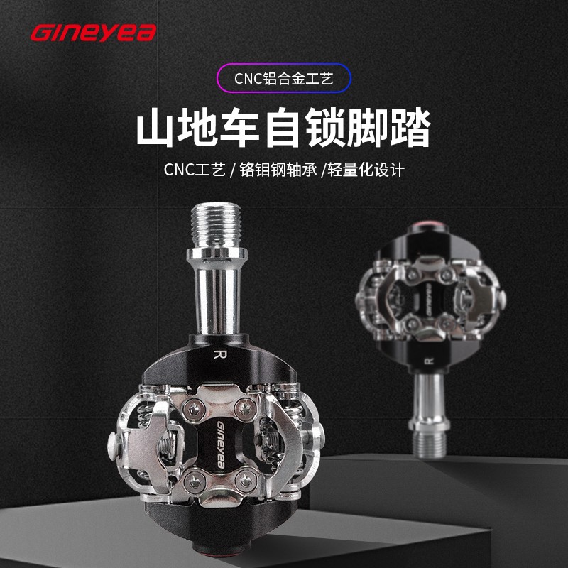 Gineyea山地車自鎖鎖踏鋁合金SPD自鎖腳踏帶鎖片密封軸承騎行腳蹬