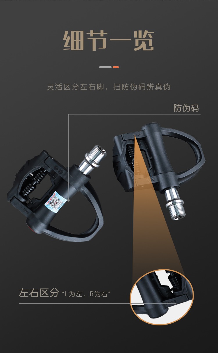 #公路車專業自鎖鎖踏,適用SPD-SL系統,自帶鎖片體驗不一樣的騎行速度、穩定、省力,踏板流線型一體化設計,高強度質量輕的尼龍材料加持,一對鎖踏僅重約278g,鎖片重量約88g,松緊度可調節的張力設置,靈活度更高,統一螺紋口徑14mm。