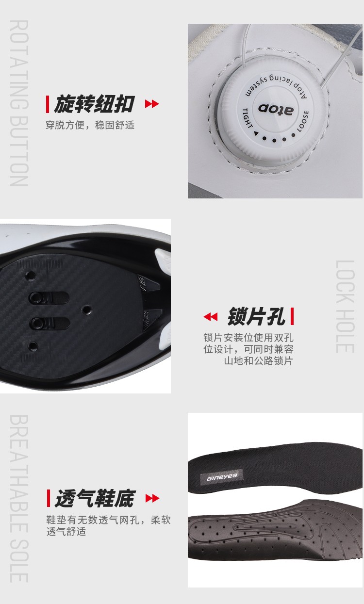 Gineyea新款透氣炭纖維山地車鎖鞋無鎖騎行鞋山地自行車男女鎖鞋