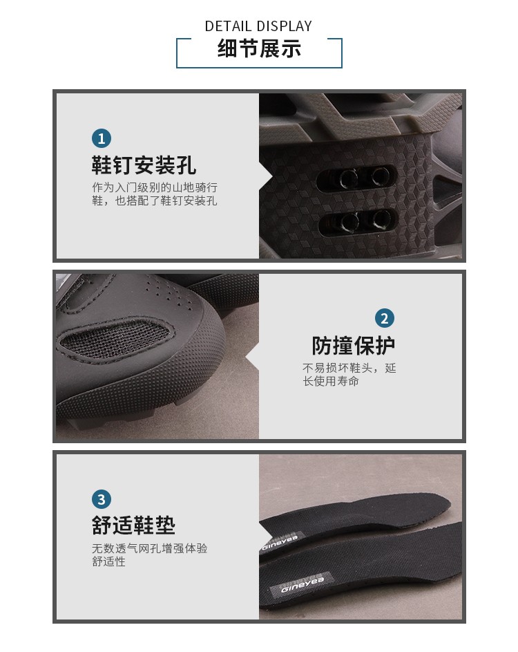 Gineyea新款透氣炭纖維山地車鎖鞋無鎖騎行鞋山地自行車男女鎖鞋